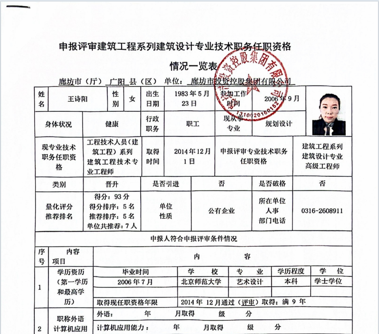 申報(bào)評(píng)審建筑工程系列建筑設(shè)計(jì)專業(yè)技術(shù)職務(wù)任職資格情況——王詩(shī)陽